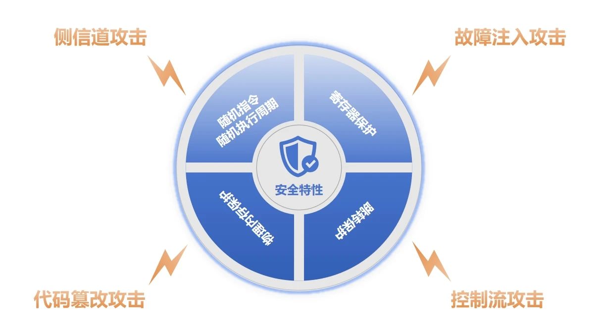 Wing-M050S与Wing-M130S拥有随机指令、随机执行周期、寄存器保护、物理内存保护、跳转保护等多种安全特性,能够有效抵御侧信道攻击、故障注入攻击、代码篡改攻击、控制流攻击等,为客户产品的高安全性、高可靠性保驾护航。