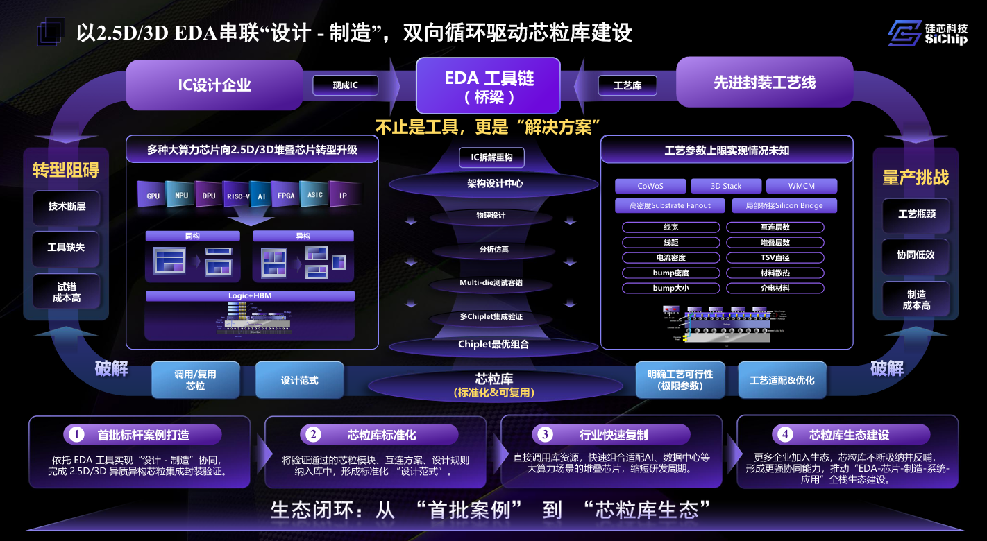 正如硅芯科技所强调的,3Sheng Integration不仅是一套EDA工具集合,更是一个协同设计与制造的应用生态平台,通过标准化芯粒库、跨工艺协同设计,推动先进封装产业协同发展,助力国内半导体企业在AI、HPC等领域的算力突破。