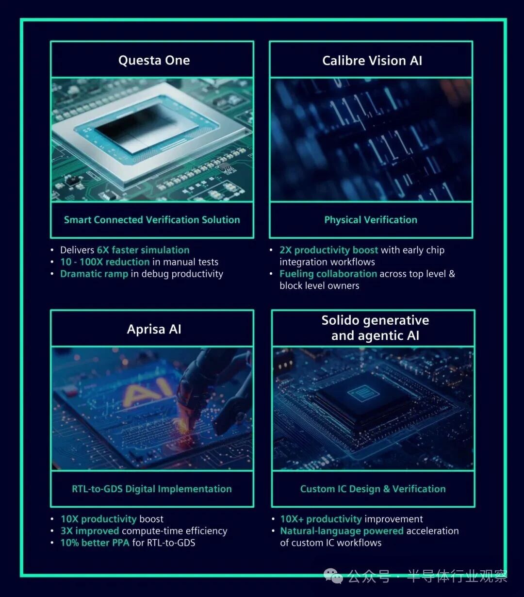 值得一提的是,西门子EDA基于EDA AI System统一技术底座,已将AI深度集成到芯片设计的各个环节,除了Questa One智能验证软件产品,还有Calibre Vision AI、Aprisa AI、Solido生成式和代理式AI等,全面赋能工程师应对日益复杂的设计挑战。