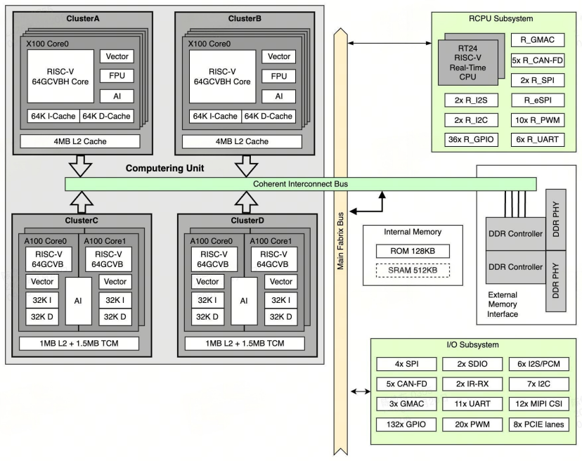 传统“CPU+MCU+NPU”多芯片分立架构,各功能域依赖外部总线桥接,跨芯片通信延迟存在高度不确定性。在 500Hz+ 高频伺服场景下,这种微秒级抖动成为难以逾越的系统性瓶颈。K3 则从芯片微架构层面给出了一体化解答: