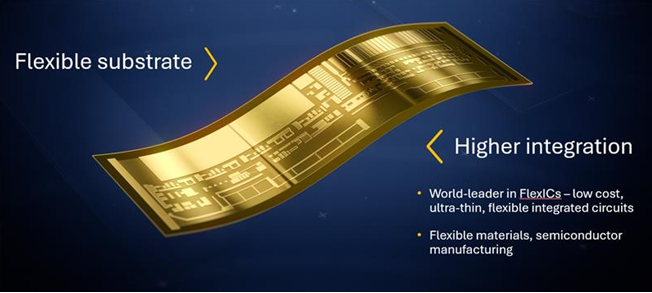 据介绍,这种轻薄、柔韧、耐用的电路不但可以在纸、塑料和金属箔等基板上轻松弯曲,贴合各种曲面,从而使其特别适用于传统刚性电子器件无法触及的领域。此外,FlexIC还可以进行定制化,从形式到功能都能提供更强的灵活性,在可智能包装、服装、玩具与游戏应用、供应链管理等应用领域前景广阔。