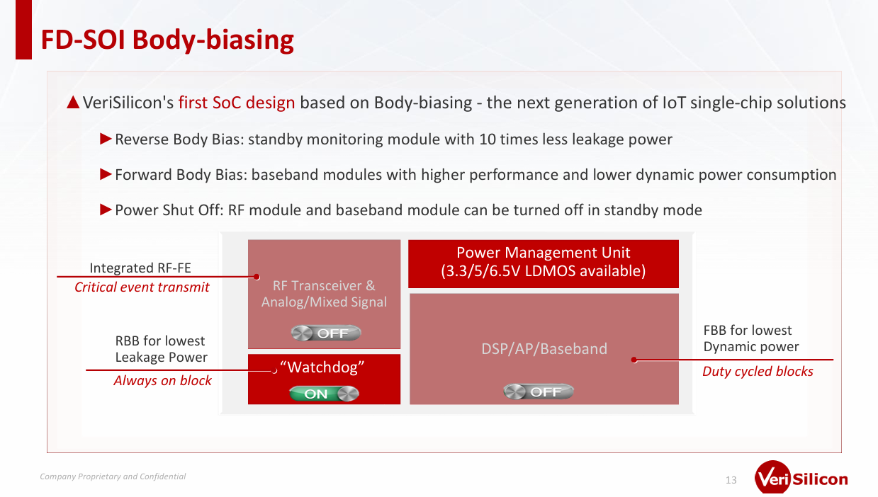 此外,芯原还在着力打造业内首个基于体偏置(Body-biasing)技术的SoC设计,开发下一代物联网单芯片解决方案,其核心特性包括: