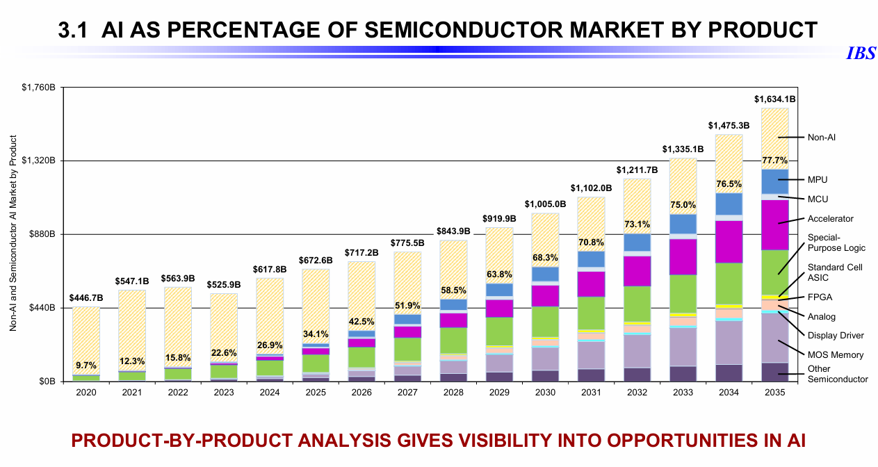 在分享中,Handel Jones通过多维度数据论证,AI已成为半导体市场增长的核心驱动力。