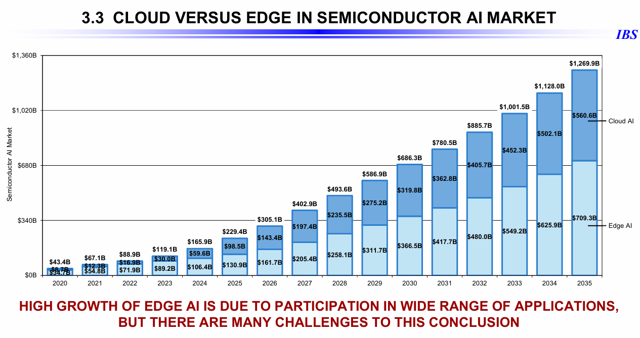 Handel Jones指出,数字时代的到来已推动AI发展进入“边缘+数据中心”双轮驱动阶段,其中边缘AI的爆发式增长正深刻改写半导体市场的需求结构。