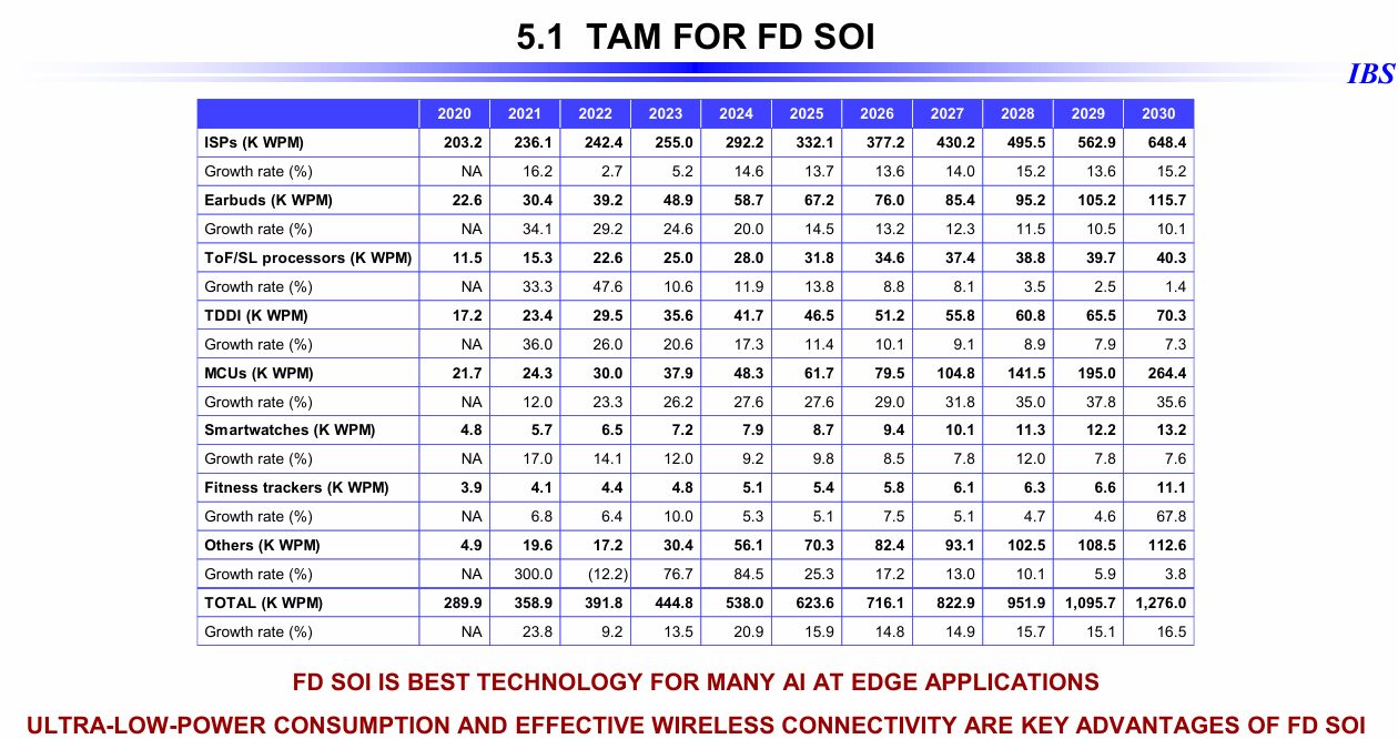 IBS强调,边缘AI的增长并非短期现象,而是未来10年半导体市场的核心主线,而FD-SOI作为适配这一趋势的关键技术,不仅能满足边缘AI对低功耗、高连接性的需求,更能帮助中国半导体企业避开先进FinFET工艺的部分瓶颈,形成差异化竞争优势。