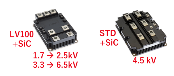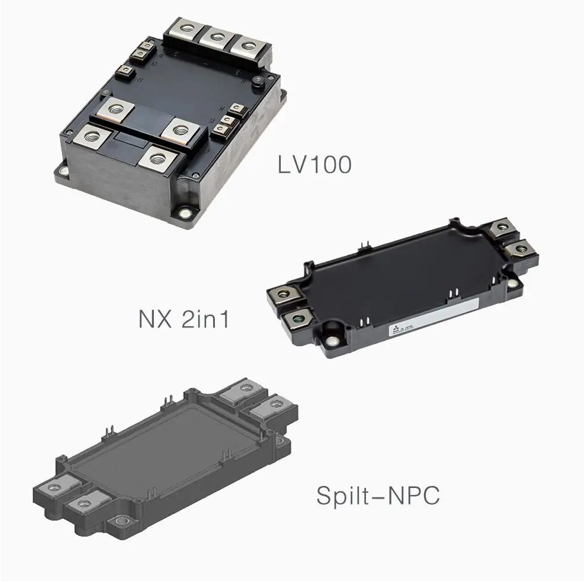 面向高压输配电应用,采用 LV100 封装,额定电压3.3kV、电流200–800A。创新的 SBD 嵌入式设计使芯片面积缩减54%,开关损耗降低58%,彻底消除双极退化风险。该模块已于2023年5/6月正式发布并量产,目前已应用于全球 HVDC输电 与轨道交通系统。