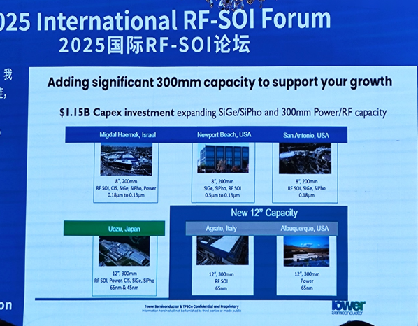 为支撑 RF SOI 技术及相关产品的商业化落地,Tower Semiconductor还启动了大规模产能扩张计划——投入1150亿美元资本支出,重点拓展SiGe、SiPho及300mm功率RF产能,并构建了全球化生产网络。