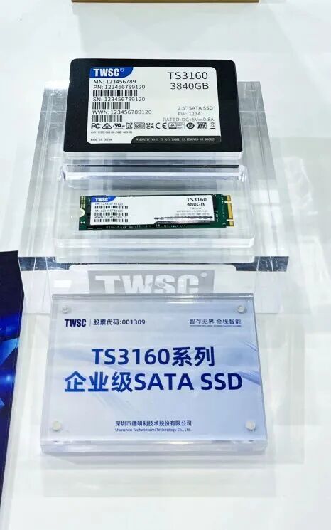 然而,AI大模型的快速发展不仅仅依赖于算力,存储能力同样至关重要。算力与存力共同构成了AI基础设施的核心。此次大会上,中国本土存储厂商德明利作为阿里云生态合作伙伴,首次展出了其面向AI应用的企业级存储解决方案,包括SATA SSD、PCIe 5.0 SSD、DDR5 R-DIMM等产品,其中QLC的大容量PCIe 5.0 SSD让人影响尤为深刻。在阿里云的自研服务器和部件展台上,德明利为阿里云定制生产的企业级SSD(eSSD)也在其中亮相(如下图),这标志着国产存储在AI产业链中“存力”这一关键环节上迈出了坚实一步。