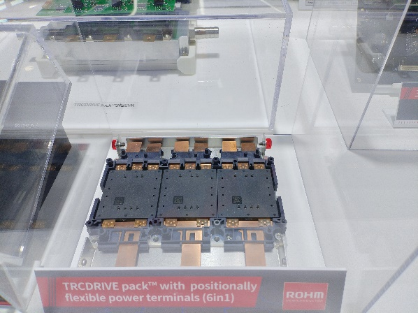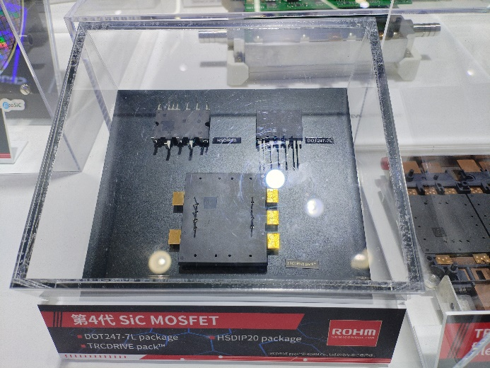 在PCIM Asia 2025展台上的应用案例区,则集中展示了罗姆与产业链合作伙伴的丰富成果,主要聚焦碳化硅和IGBT在车载应用中的实际表现。