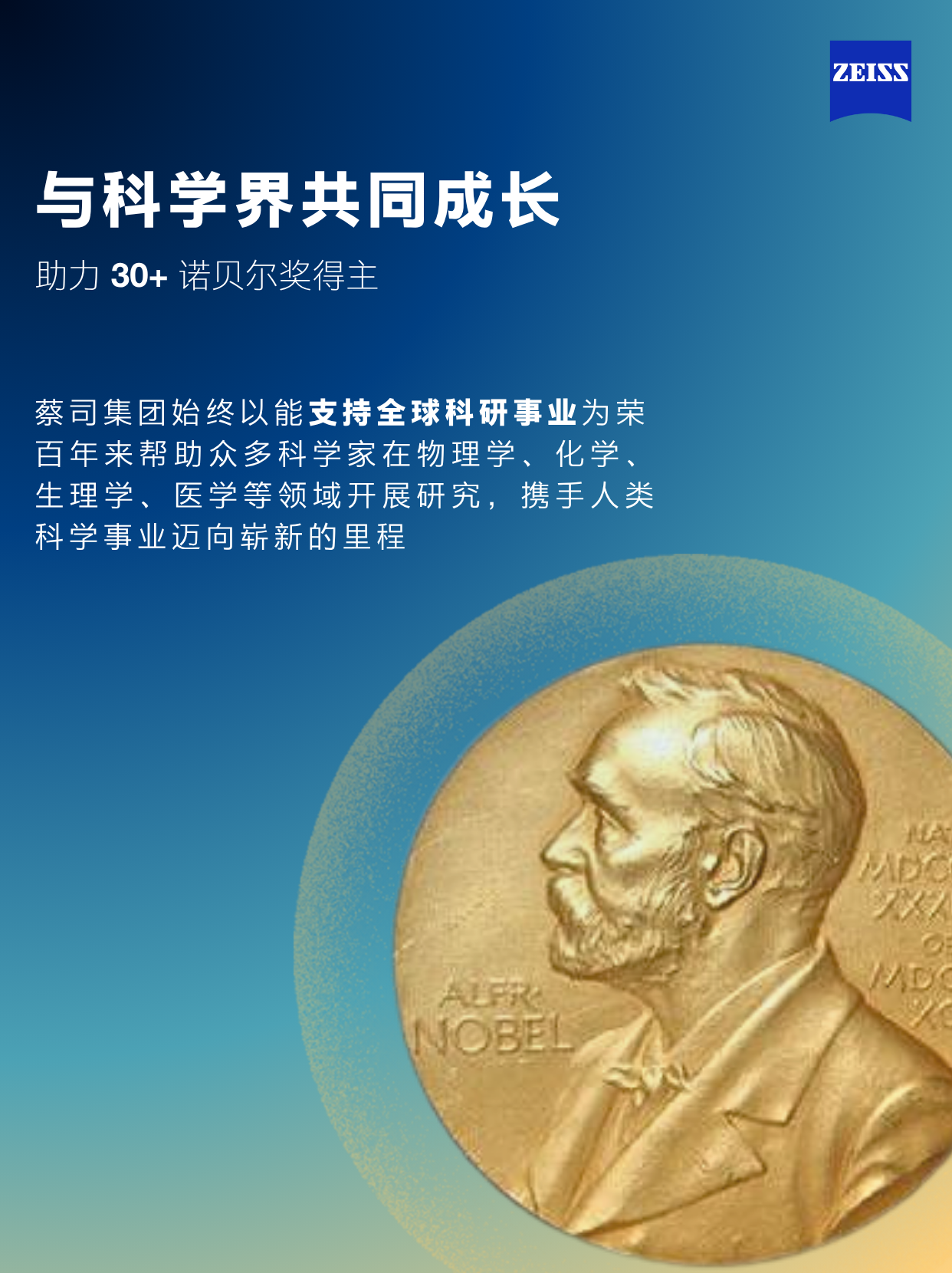 我们深感荣幸,能够以这种方式为人类科学事业的发展贡献一份力量,让我们期待下一个诺贝尔获奖选手和蔡司共享科研机遇。
