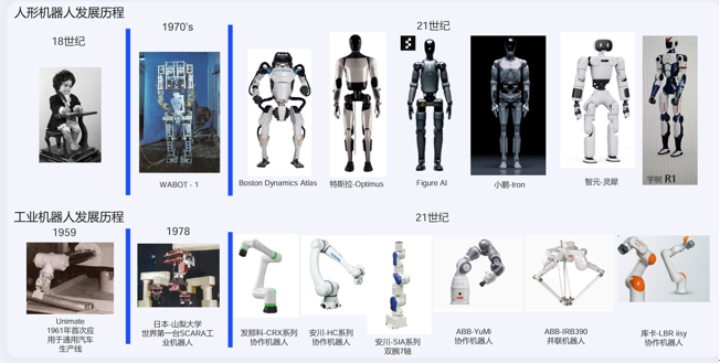 回顾机器人产业发展历程不难发现,21世纪以来,全球人形机器人行业快速发展,波士顿动力、特斯拉等国际企业与宇树科技、智元、小鹏等国内企业均推出各具技术特色的产品,在技术进步、政策支持和市场需求推动下正迈向规模化应用。