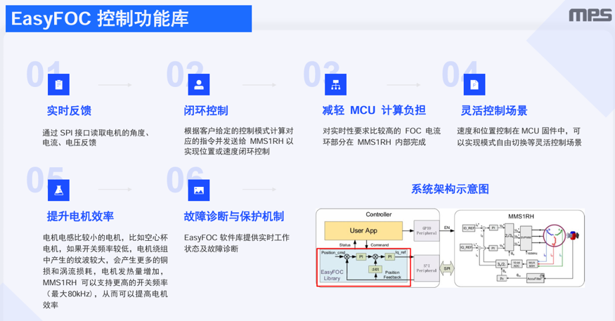 与此同时,在人形机器人对运动控制精度、开发效率要求日益提升的背景下,MPS推出的EasyFOC控制功能库,以算法赋能硬件,软件简化开发的思路,成为驱动机器人精准高效动的核心软件方案。