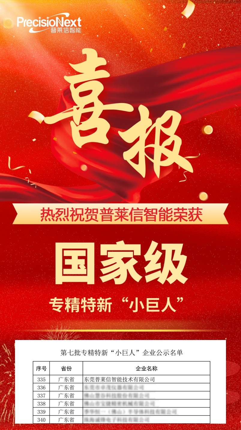 祝贺普莱信智能荣膺国家级专精特新“小巨人”企业