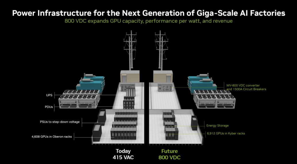 下一代 AI 工厂的能源底座革命:从 415VAC 到 800VDC(来源:Nvidia)
