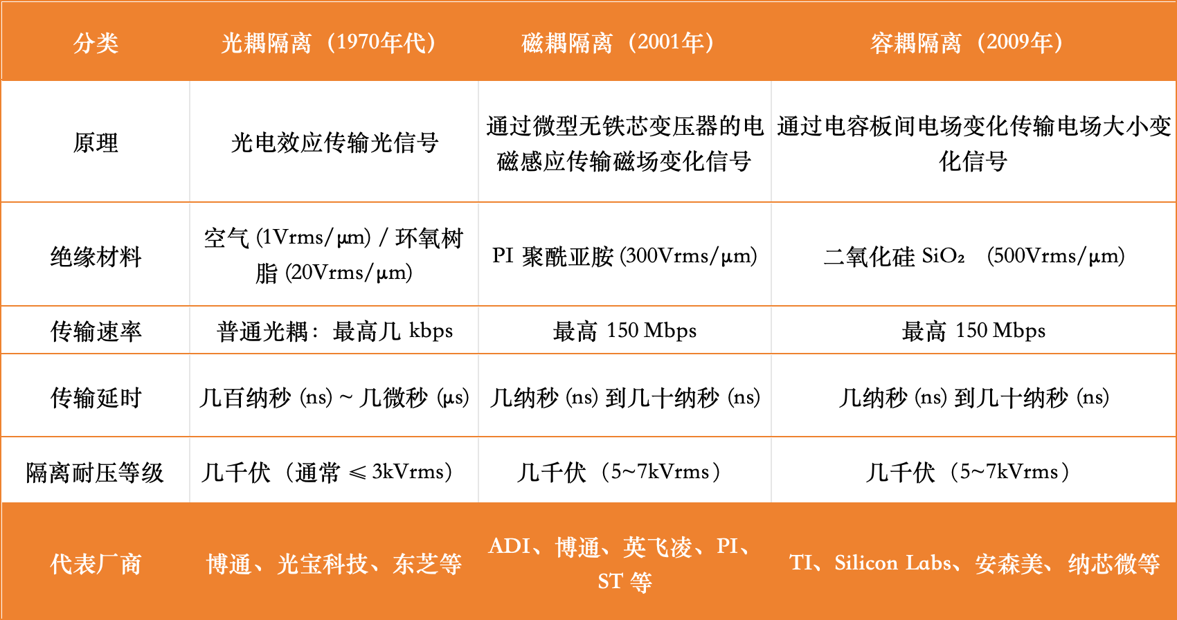 传统隔离技术——无论是光耦、磁耦还是容耦——在过去二十年支撑了绝大多数工业、汽车和消费电子应用。全球隔离芯片市场过去一直由 ADI、TI、Silicon Labs、Broadcom、Infineon 等国际巨头主导,前五大厂商合计份额超过50%。然而面对高压、高频的新形态系统,它们的性能极限开始暴露,无法有效解决下游客户在以下关键指标上的痛点:
