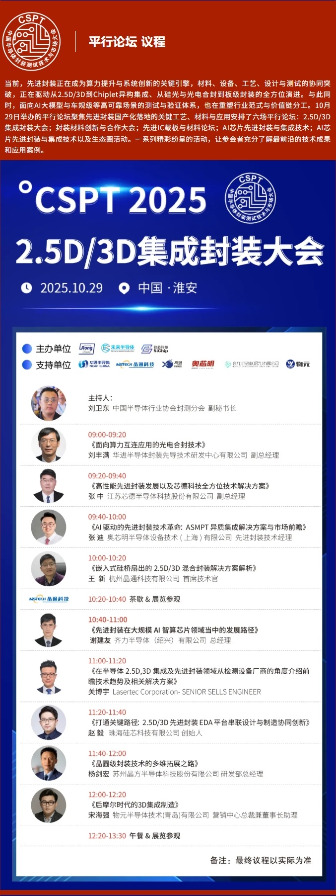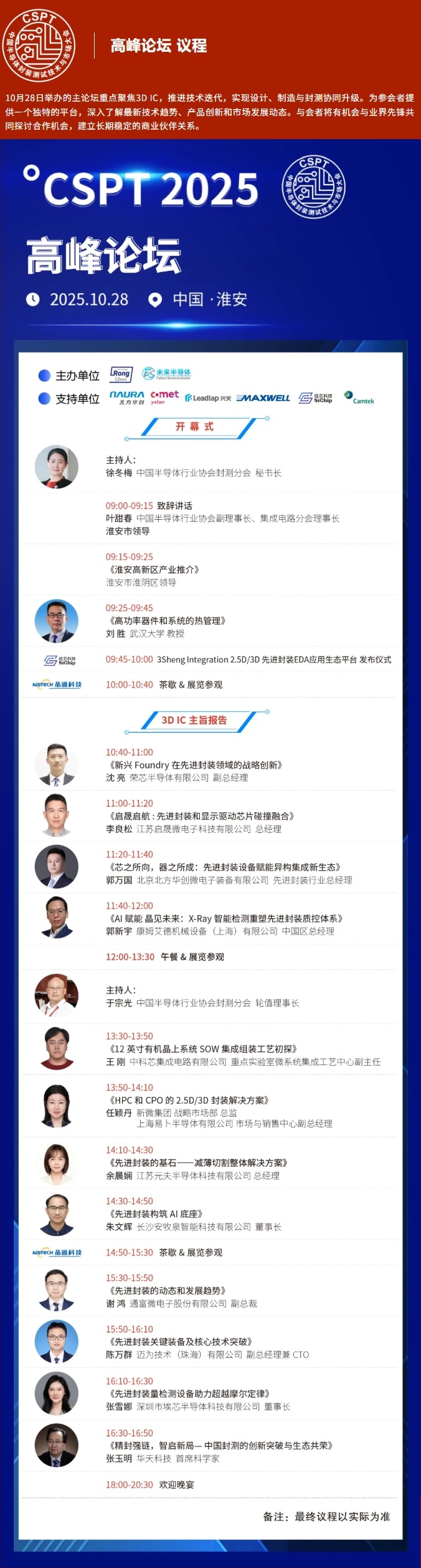 【大会议程】中国半导体封装测试技术与市场大会