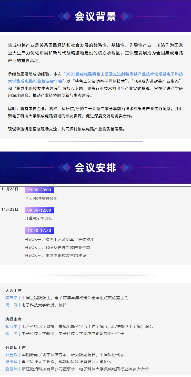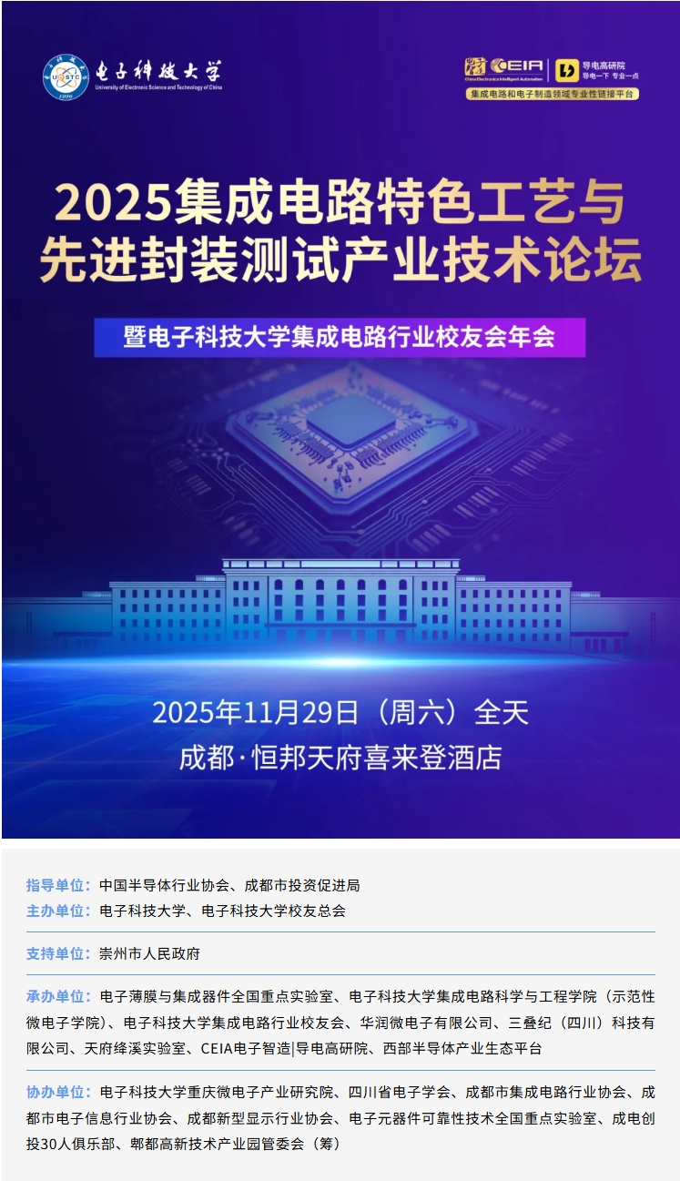 嘉宾更新|2025集成电路特色工艺与先进封装测试产业技术论坛暨电子科技大学集成电路行业校友会年会