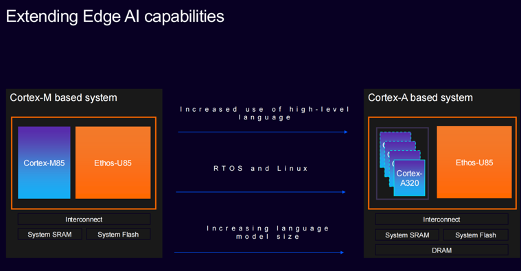 在Arm看来,Ethos-U85 的这一能力凸显了将 AI 直接嵌入设备的巨大潜力。即使在内存有限(320 KB SRAM 用于缓存,32 MB 用于存储)的情况下,Ethos-U85 也能高效处理此类工作负载,从而为小型语言模型和其他 AI 应用在深度嵌入式系统中蓬勃发展铺平了道路。