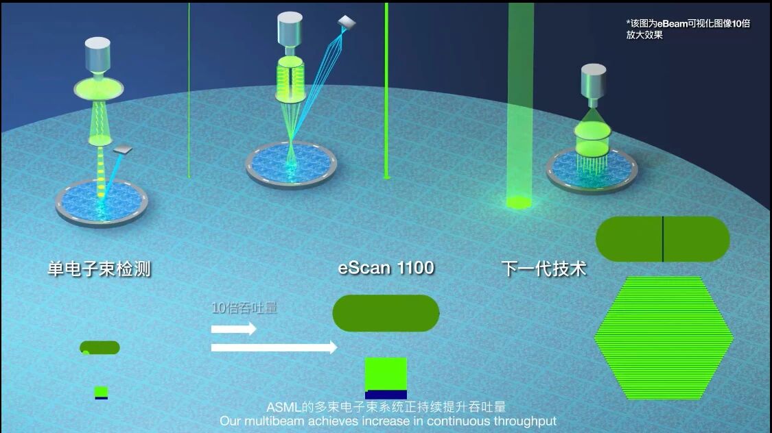 在电子束量测与检测设备方面,ASML也在持续不断推进创新。eScan 1100作为ASML首款实现在线缺陷检测(涵盖物理缺陷和电性缺陷)的25束电子束检测系统,其晶圆量测吞吐量提升至传统单束系统的10倍以上。
