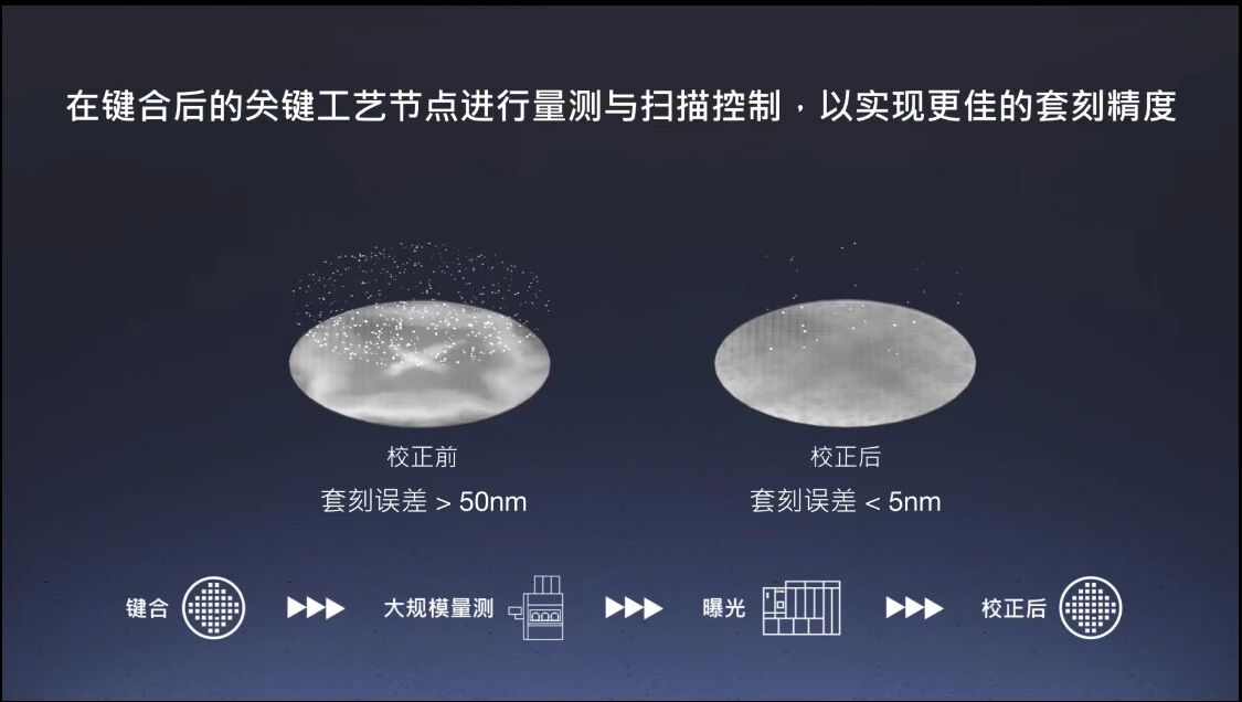 在精度控制与工艺适应性上,ASML DUV设备的校正能力也尤为突出。针对晶圆键合前后的形变难题,通过大规模计量技术捕捉晶圆形变特征,再借助光刻机曝光补偿实现局部图案调整,能够将键合后套刻误差从50nm量级成功降至5nm以下,部分场景下甚至能降至2.5nm以内,完美适配晶圆-晶圆(W-W)、晶圆-芯片(D-W)混合键合的工艺需求,为芯片集成路径提供重要支持。