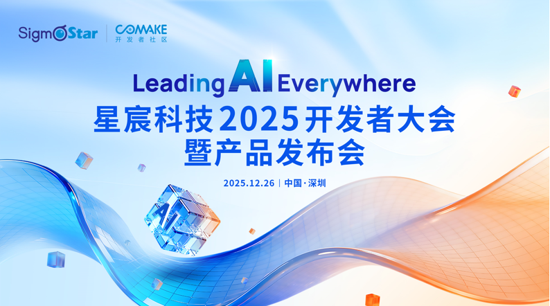 这场集技术分享、新品发布、实战演练、生态展示于一体的行业盛会,正式定档12月26日,诚邀每一位开发者、合作伙伴共赴深圳,携手推动AI技术普惠发展,共创智能新生态。即刻锁定报名,与星宸科技一同开启端侧AI的全新篇章。