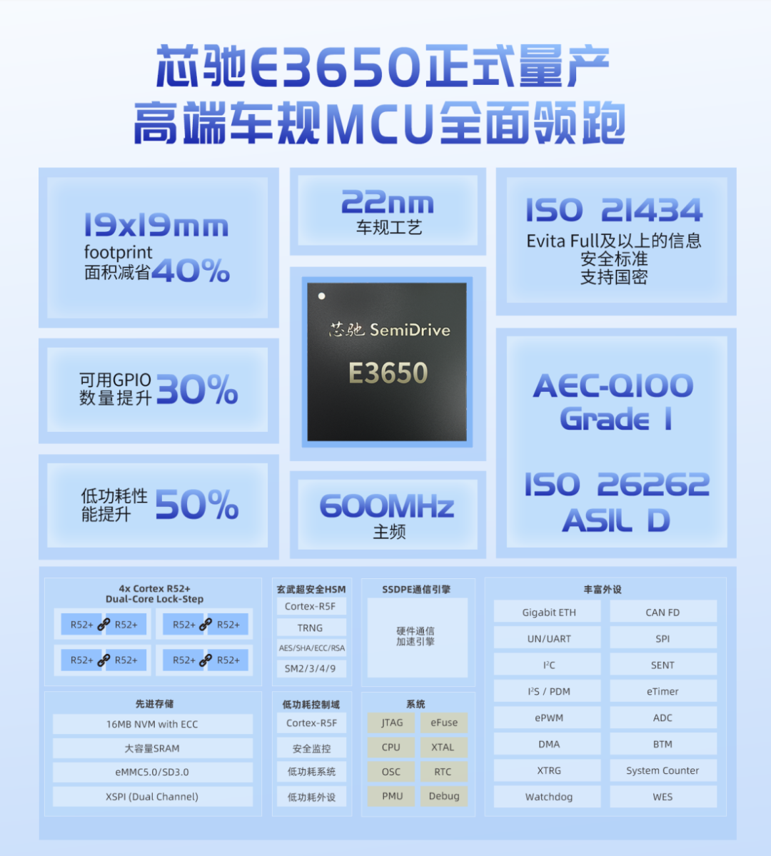 前不久,芯驰E3650的规模化量产,成为国产高端车规MCU突破的重要标志。