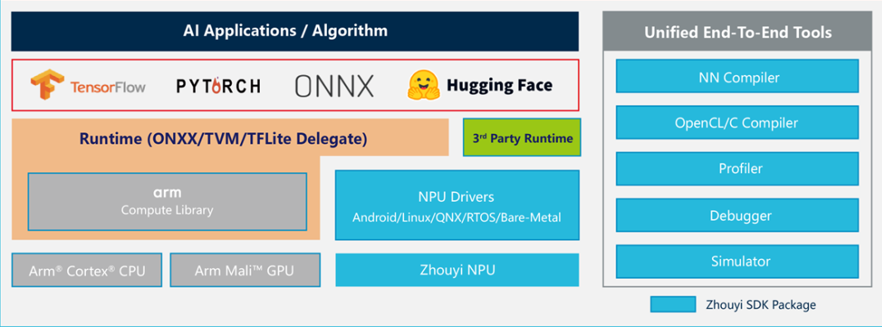 Compass AI软件平台提供端到端统一工具链,可实现“一键部署,开箱即用”。原生支持Hugging Face、主流AI框架与OS,支持160+算子与270+模型,并对LLM/VLM/VLA及MoE等大模型推理进行深度优化,实现从CNN到Transformer模型的无缝接入,大幅降低模型部署门槛与成本。同时,平台对量化算法的支持与具备的动态Shape能力,可在提升性能的同时有效降低功耗,避免无效计算。