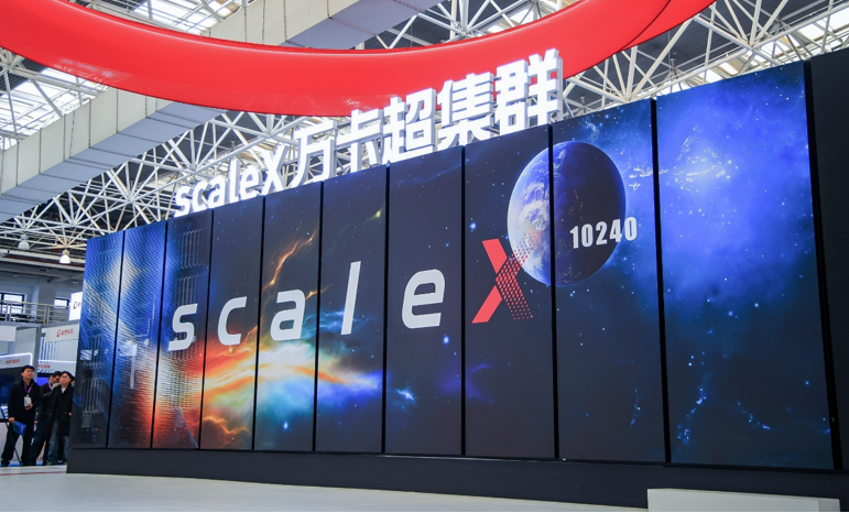 2025年12月18日,在昆山举行的光合组织2025人工智能创新大会(HAIC2025)上,中科曙光发布并展出了全球领先的大规模智能计算系统——scaleX万卡超集群,这也是国产万卡级AI集群系统首次以真机形式亮相。