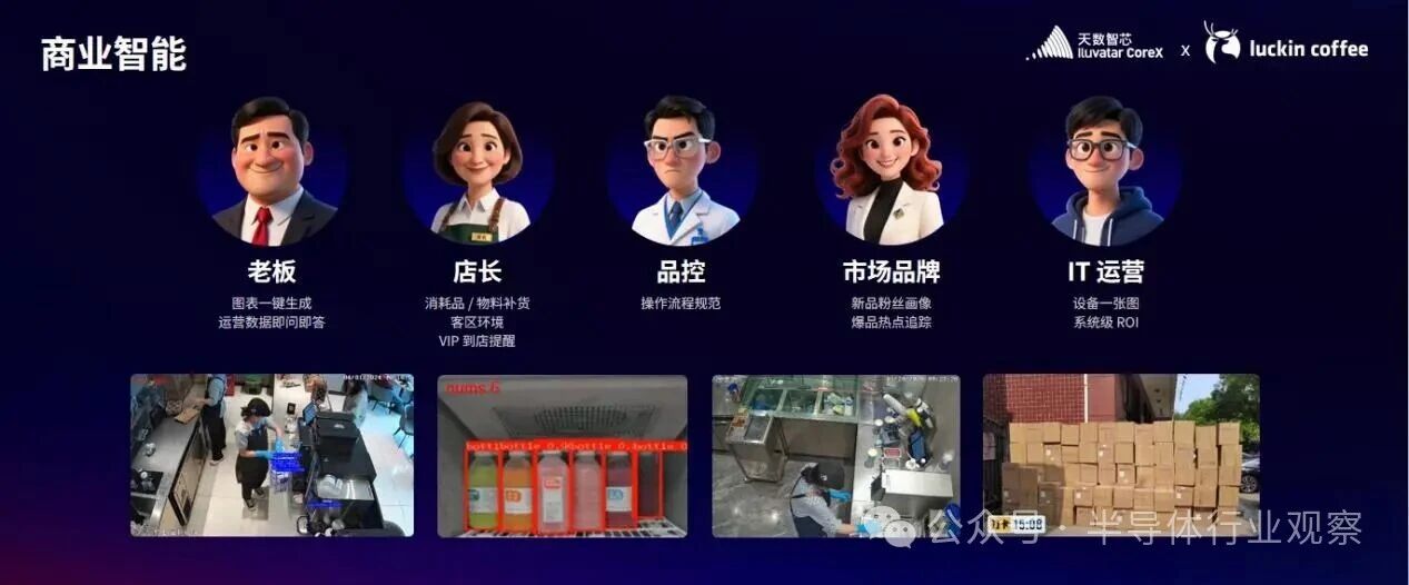 来到最新发布的彤央系列产品上,天数智芯也推动其落地大量应用场景:具身智能领域,为格蓝若机器人提供高算力、低延迟的“大脑”支撑;在工业智能领域,落地园区与产线,推动产线自动化升级;在商业智能领域,瑞幸咖啡数千家门店部署彤央方案,高效处理视频流、挖掘消费数据价值;在交通智能领域,与“车路云一体化”20大头部试点城市合作,验证车路协同方案。