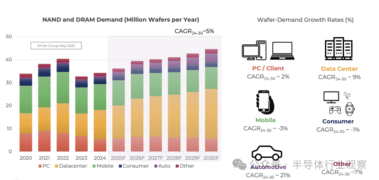 Yole Group于2025年8月在FMS发布报告中也表示,在2024年到2030年年间,应用于汽车的NAND和DRAM的年复合增长率将高达21%,是所列产品中速度最快的。现在,随着AI加快对存储产能的争夺,叠加产品涨价带来的影响,存储带给汽车的问题越来越严峻。