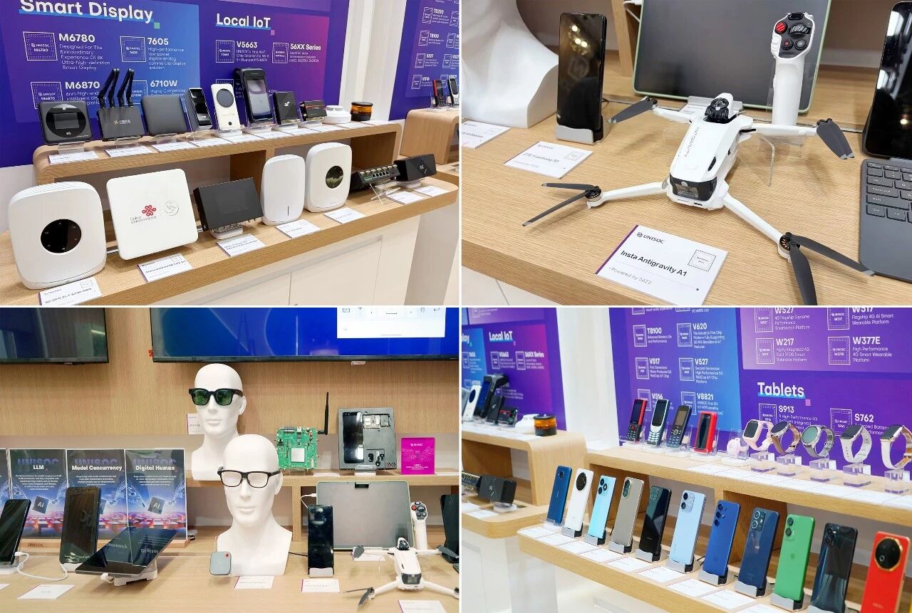 大会期间,紫光展锐与中国联通、影目共同推出欧洲定制版INMO GO3 AI眼镜,该产品搭载展锐穿戴芯片W337,深度集成联通元景大模型,可实现261种语言在线互译、声纹识别等功能。目前搭载展锐芯的影目、大朋等AI眼镜产品在离线翻译、会议转写、物体识别等场景中实现落地,推动智能眼镜从功能性设备向日常穿戴产品演进。同时,中国联通云智AI Pad、VAIO TL12等AI平板产品集中亮相,全面呈现了展锐端侧AI解决方案在多样化终端中的规模化商用能力。