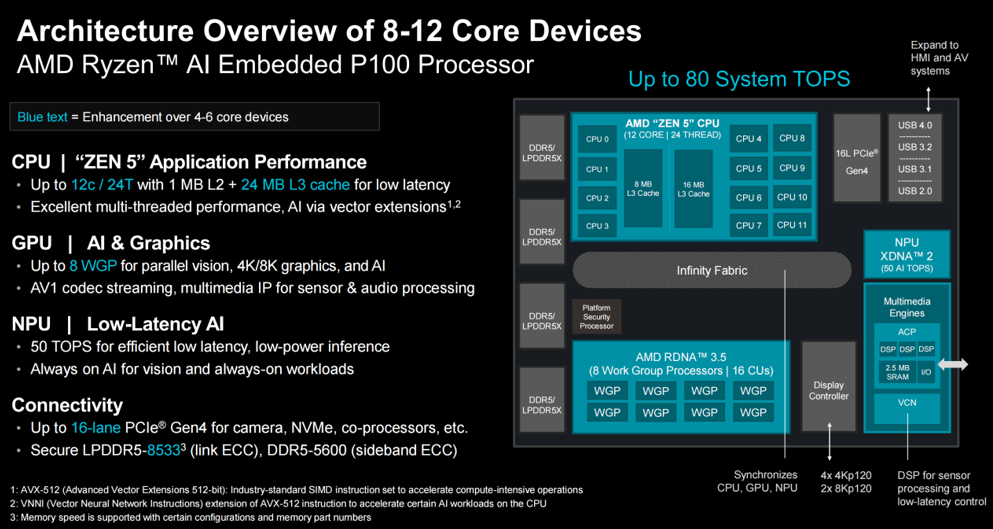 有见及此,AMD扩展了锐龙 AI 嵌入式处理器产品组合,并于近日推出了新款 P100 系列处理器,以更强的算力,为工业与 AI 边缘解决方案提供可靠的支持。