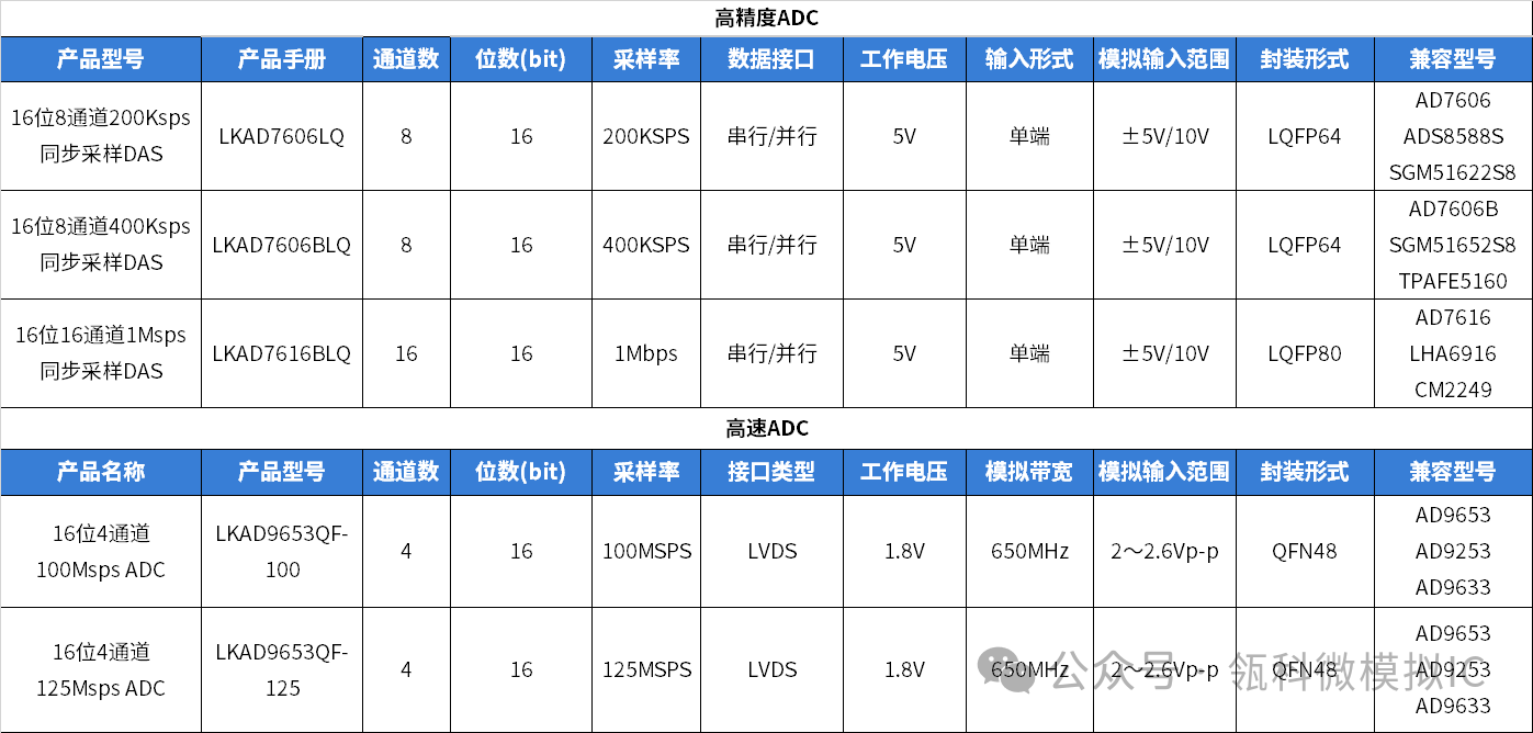 在高速ADC方面,瓴科微推出LKAD9653QF系列,该系列产品具有: