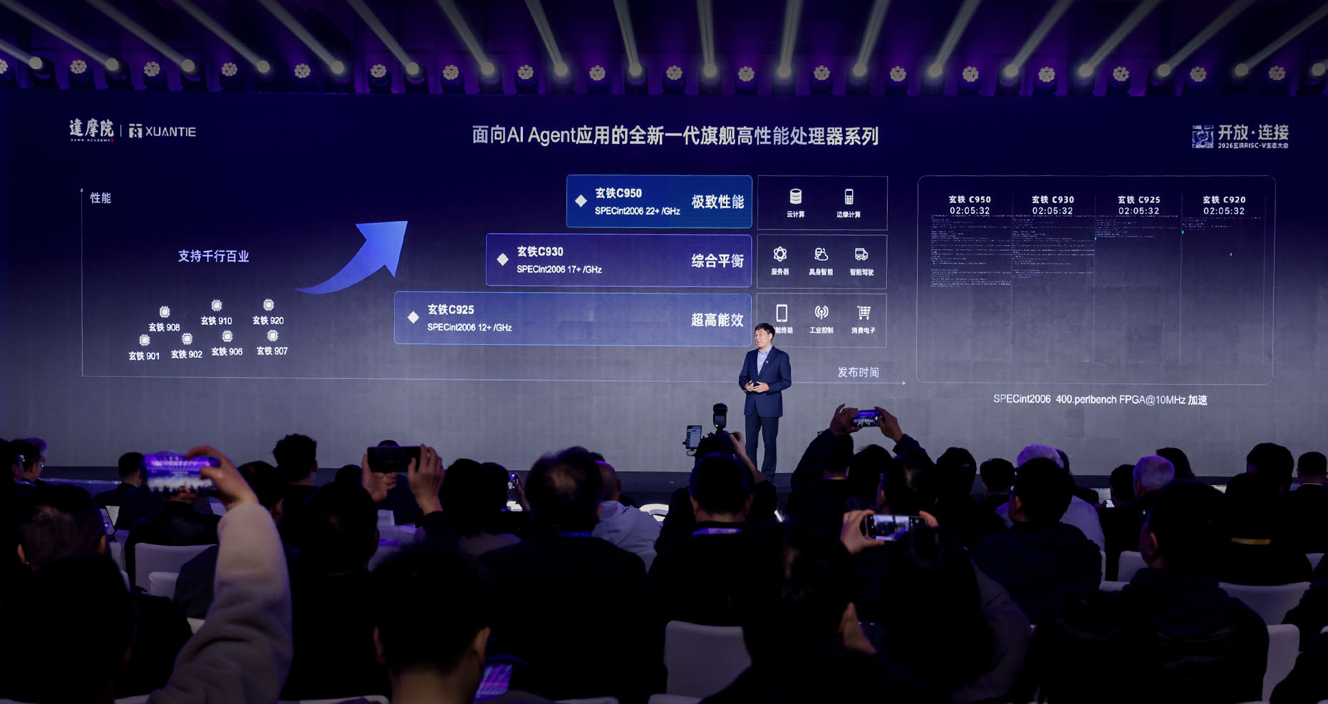 然而,在2026 年 3 月 24 日,以“开放•连接”为名的玄铁 RISC-V 生态大会,成为了 RISC-V 告别“青涩期”的成人礼。此次大会上,阿里达摩院正式发布了最新、也是最强的RISC-V CPU IP——玄铁C950。
