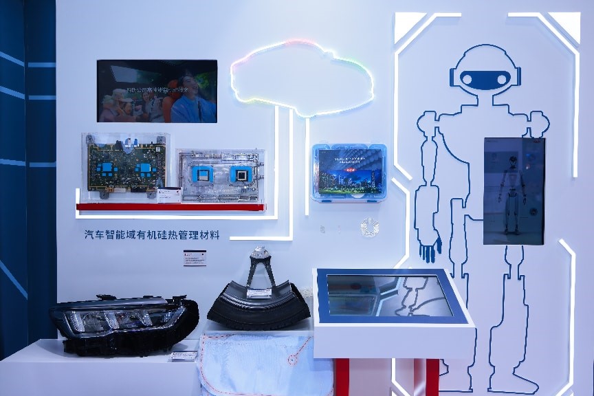 展台上,从导热凝胶、导热硅脂、浸没式冷却液到先进封装材料,数十款有机硅产品构建起一条贯穿“芯片—封装—系统—终端应用(数据中心、消费电子、智能汽车、具身智能等)”的完整材料解决方案路径,也勾勒出热管理从局部优化走向系统工程的演进趋势。