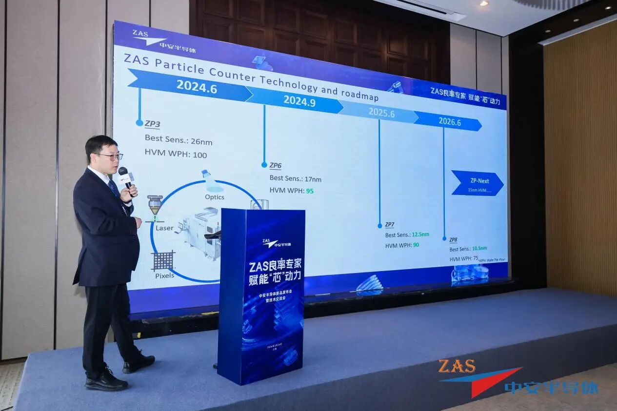 长期以来,先进制程下的高灵敏缺陷检测始终是国产设备的隐痛。然而在国际厂商长期盘踞的腹地,中安 ZP 系列展现了极具压迫感的迭代节奏,据中安半导体市场应用 VP 初新堂先生的介绍,从 2024 年到 2025 年,中安的无图形缺陷检测设备保持半年一代的产品迭代节奏,短短一年就实现了检测灵敏度从 26nm 到 17nm 再到 12.5nm 的跨越式跳变。
