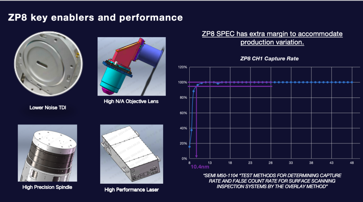 在这些关键使能技术的共同作用下,ZP8 在性能指标上实现了对 10.5nm 级缺陷的稳定检测,这意味着 ZP8 不仅在实验室条件下具备先进节点检测能力,更在量产环境中具备可落地的稳定性与可靠性。