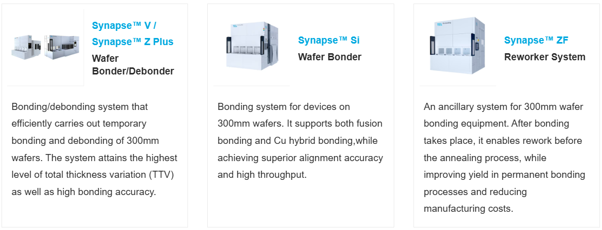 对于当前HBM主流量产方案——TCB热压键合,TEL则提供了Synapse™ V/Synapse™ Z Plus临时键合与解键合设备。