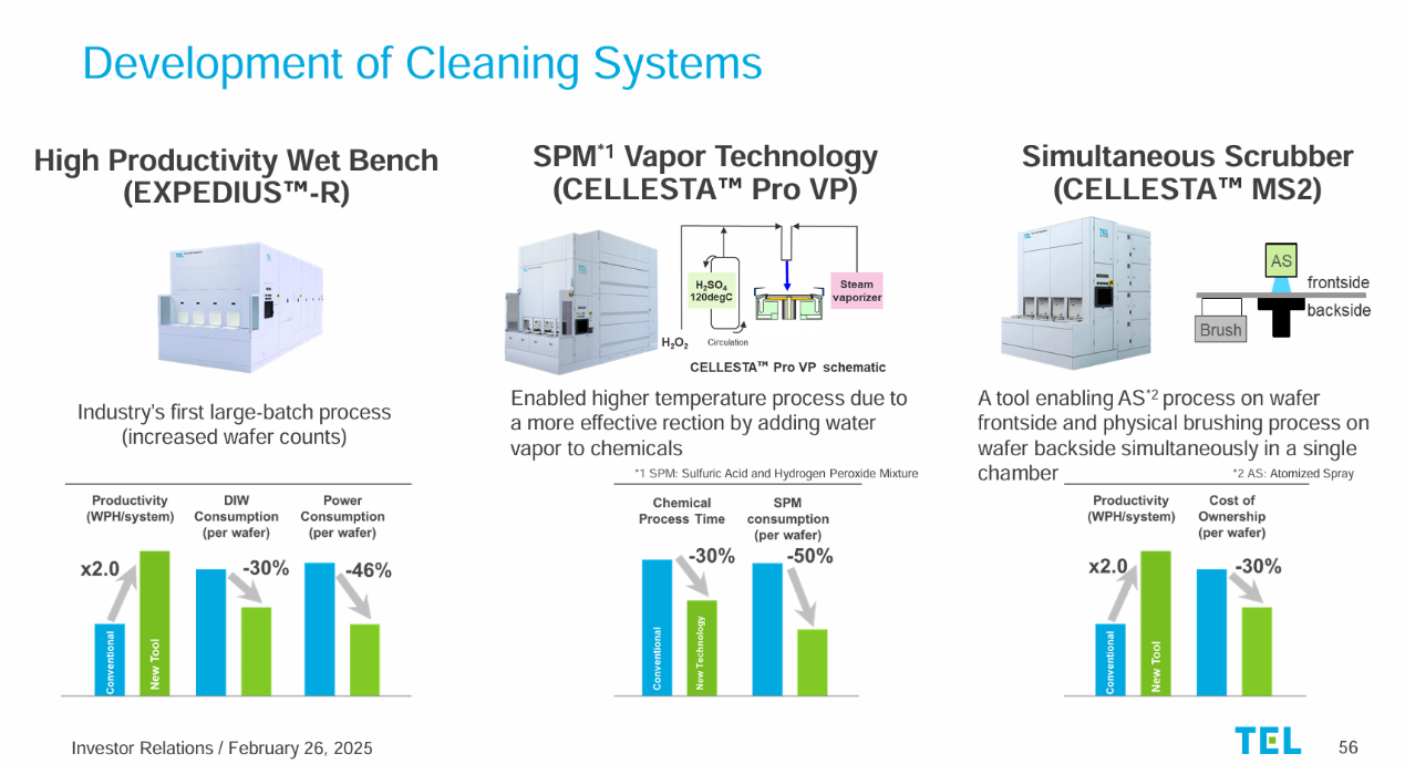 值得关注的是,TEL在刷片清洗领域推出了划时代的创新产品——CELLESTA MS2设备,这是目前行业内唯一实现量产的双面同步刷片清洗设备。