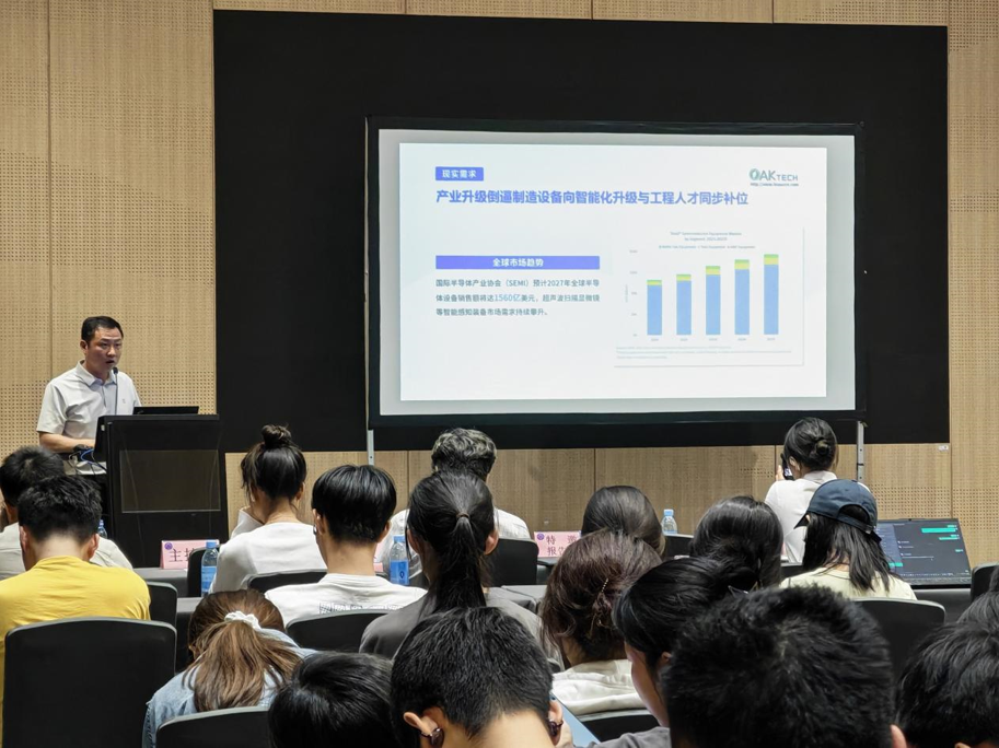 本届大会由中国光学工程学会等机构主办,以“创新驱动、跨界融合、赋能产业、引领未来”为主题,汇聚国内外智能制造、工业互联网、人工智能等领域权威专家。在“智能感知与信息化专题交流会”上,栎新源代表姜涛发表了题为《面向新型工业化的智能感知与智能制造:检测装备国产化与芯片人才培养双轮驱动》的报告。