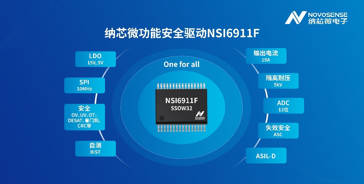 纳芯微今日宣布推出国内首款基于全国产供应链、通过TÜV莱茵认证并达到ISO 26262 ASIL D等级的隔离栅极驱动——NSI6911F系列。