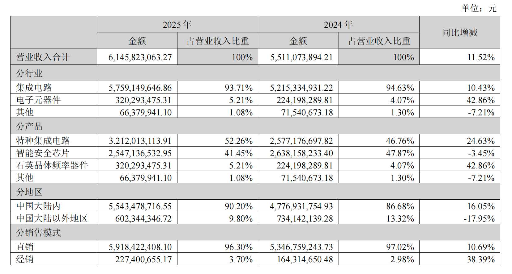 从报告看来,高强度的研发投入是公司取得当下成绩的重要倚仗。数据显示,紫光国微2025财年研发投入 150,911.56 万元,占营业收入比例 24.56%。作为对比,公司2024年财年研发投入占营业收入比例也高达23.33%。