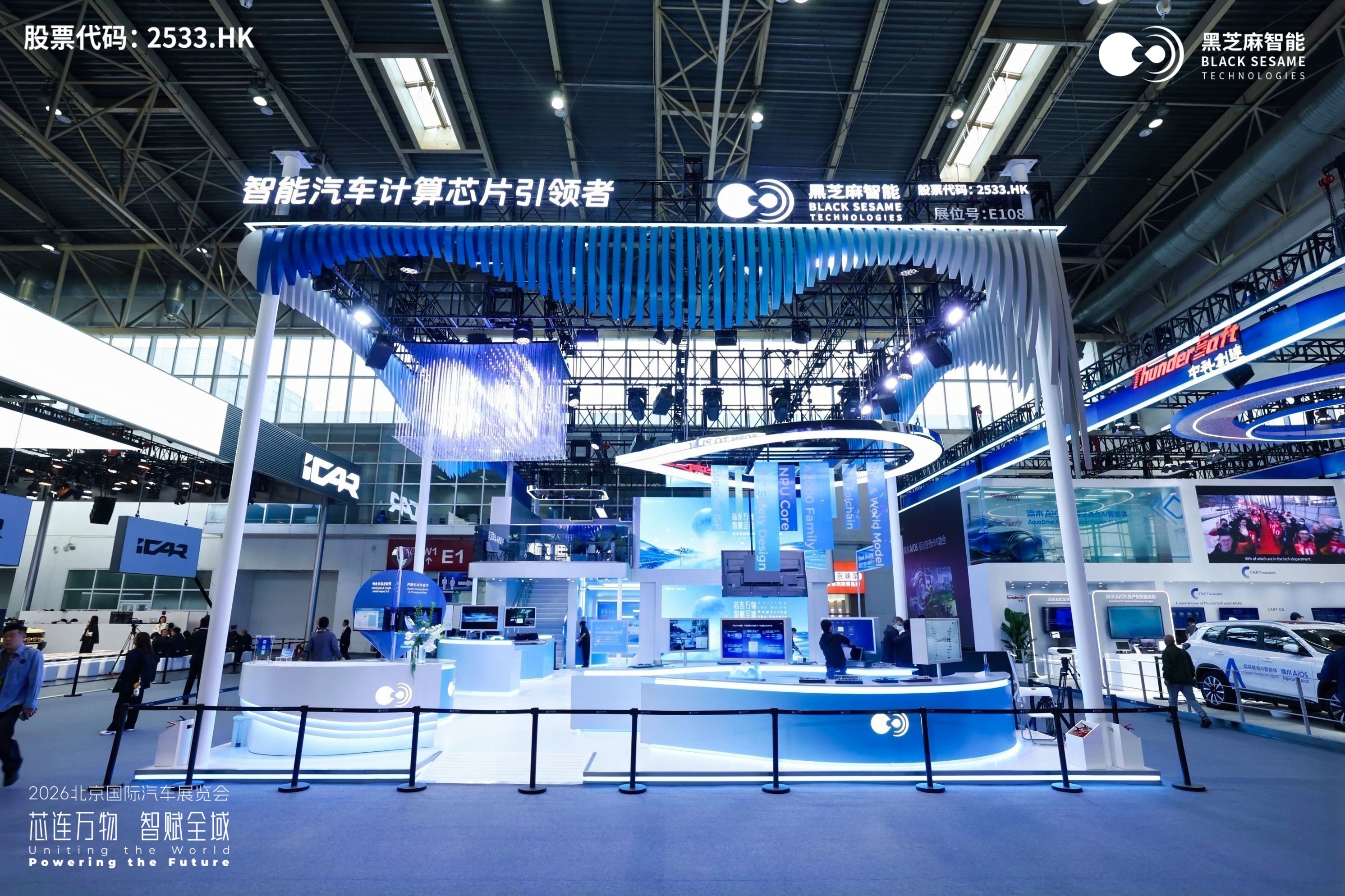 4月24日,2026北京车展盛大开幕,超2000家中外企业同台诠释“领时代·智未来”的主题。黑芝麻智能(展位号:E108)携全系列产品与全场景解决方案参展,并带来产业链协同创新的丰硕成果,清晰呈现出全场景、立体化的算力芯片战略布局。