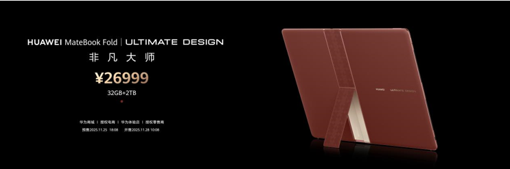鸿蒙电脑2款机型均支持升级HarmonyOS 6,用户可通过设置 > 搜索“软件更新”> 检查更新进行系统升级。此次全新配色HUAWEI MateBook Fold非凡大师“瑞红”32GB / 2TB版售价26999元,2025年11月25日18:08开启预售,2025年11月28日10:08在华为商城/华为授权电商,华为体验店/华为授权零售商平台全面开售。HUAWEI Care+两年期优惠价3999元。