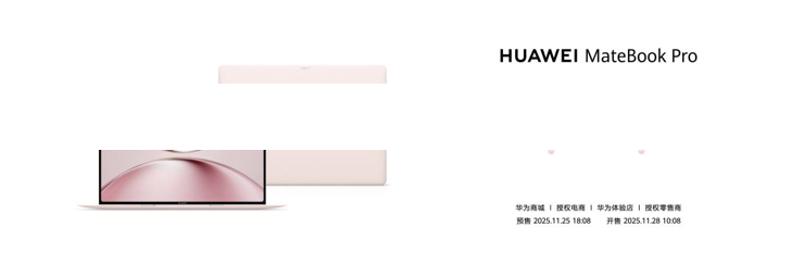 HUAWEI MateBook Pro“拂晓粉”32GB/1TB版本售价为¥8999,32GB/1TB柔光版售价为9999元,2025年11月25日 18:08开启预售,2025年11月28日10:08正式开售,消费者购买笔记本同时还可加购999元为期三年的HUAWEI Care+服务。
