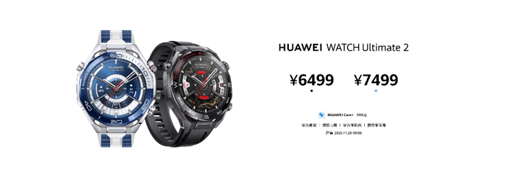 HUAWEI WATCH Ultimate 2 非凡探索6499元起,现已开启预售,11月28日9:08正式开售。届时,用户可登陆华为商城及各大授权电商平台,或前往华为体验店、华为授权零售门店进行购买。
