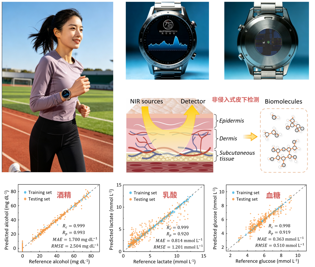 基于这一路径,光引科技率先论证了微型光谱仪在可穿戴健康管理与疾病风险预测这一新兴领域中的巨大潜力。通过大规模志愿者人体数据采集与分析,并结合先进的神经网络算法,这枚小小的“光谱之眼”已能够实现对多项关键皮下生理指标的无创、实时监测,包括胶原蛋白、皮肤水分、皮肤油脂、血酒精、血乳酸,甚至具备对血糖变化趋势进行连续监测的潜力。