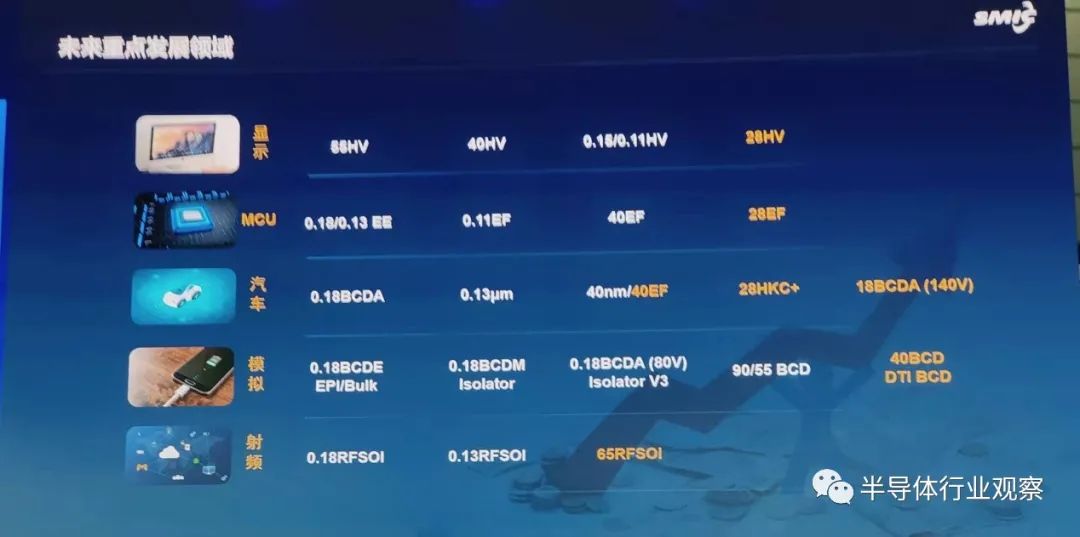 在提高产能的同时,中芯国际过去几年也做了一些预见性的技术布局。从彭进的介绍我们得知,公司在显示、MCU和模拟领域也获得了极大的竞争力,这些工艺正好让中芯国际在这次芯片新浪潮中能够为客户解决更多的需求。