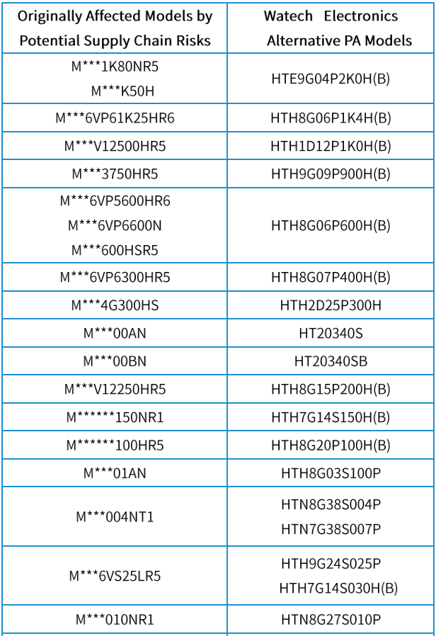 市场供应链风险产品与华太射频PA对应物料清单(2025年10月更新)