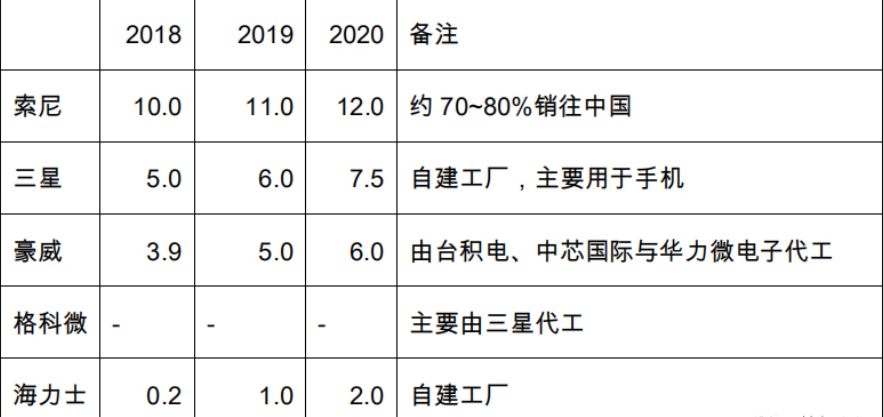 目前,在全球三大CIS厂商中,索尼和三星是IDM、它们的产品主要由自家工厂生产,而北京豪威(OmniVision)是Fabless,其CIS主要交给晶圆代工厂生产,台积电很大一部分CIS产能都是用来接单豪威的,另外,华力微电子和中芯国际也有豪威的订单。